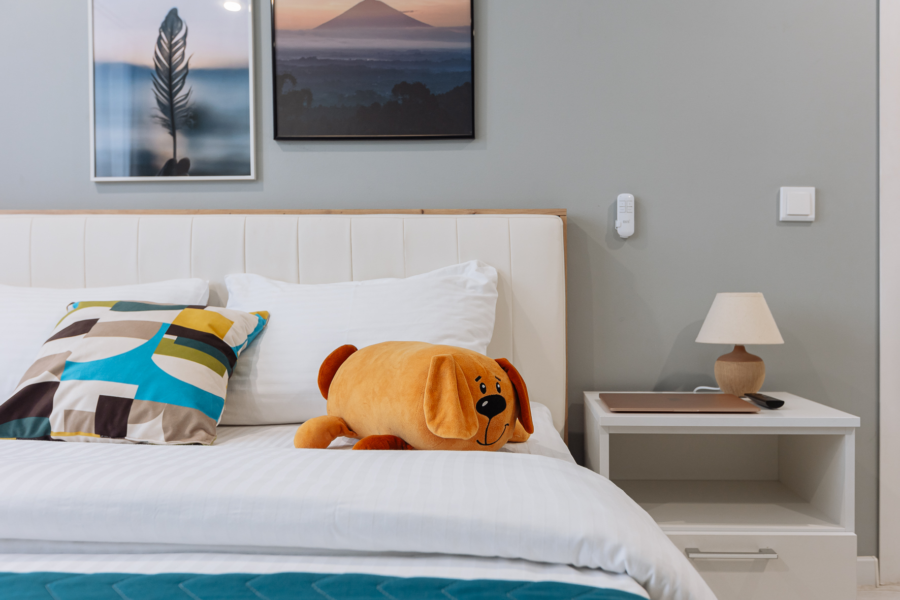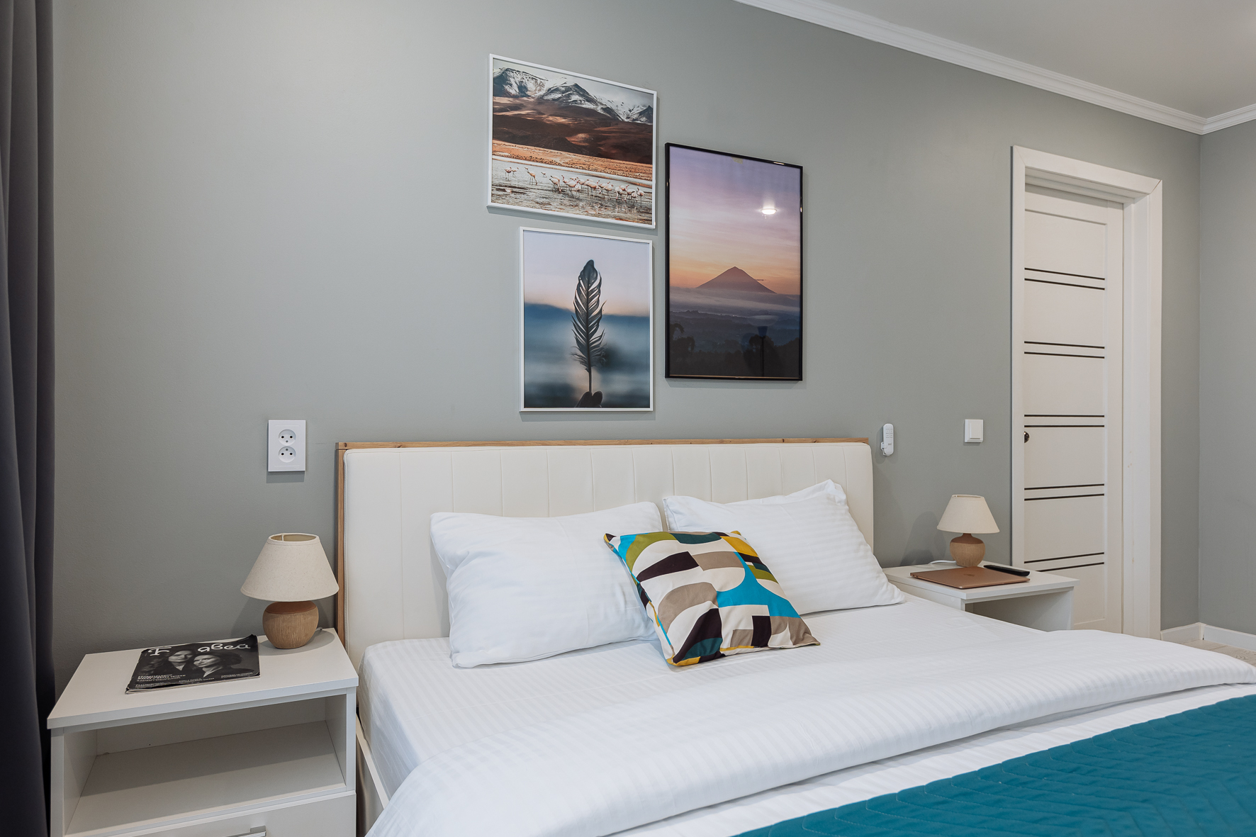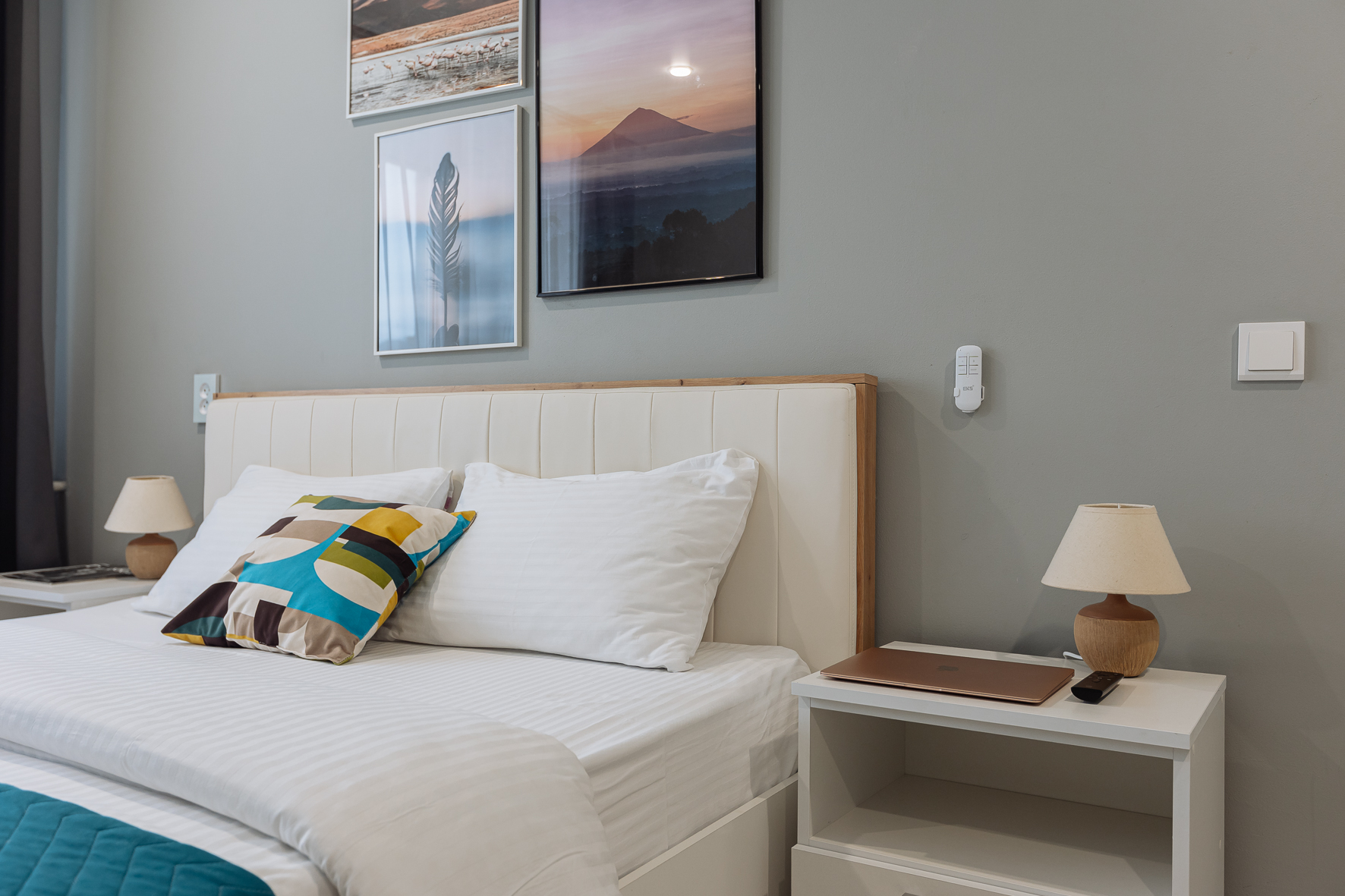 Белоснежное бельё и тишина, которая царит в квартире, позволят вам прекрасно отдохнуть и набраться сил после насыщенного дня.