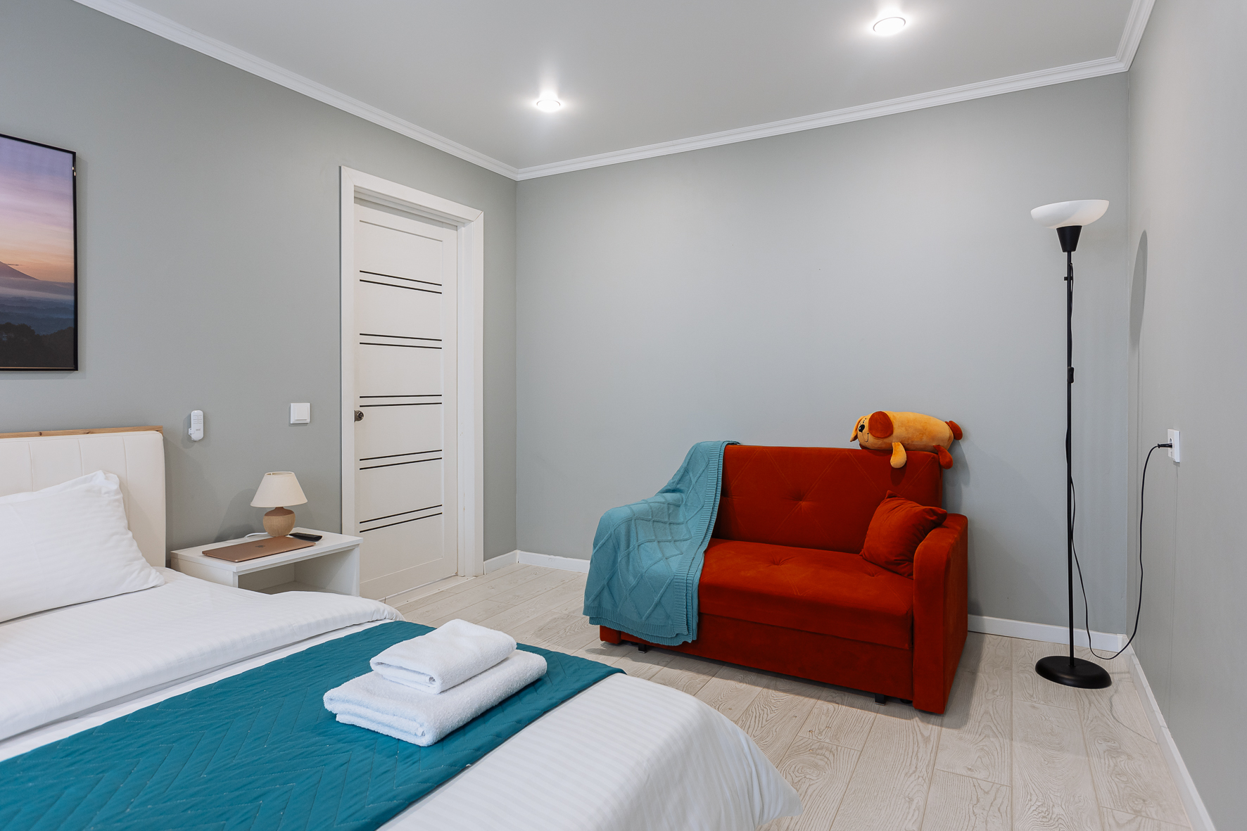 При двухместном размещении и оплате по тарифу для 2 гостей застилается только кровать. Дополнительное постельное бельё для дивана предоставляется по запросу за дополнительную плату (Необходимо сообщать заранее).