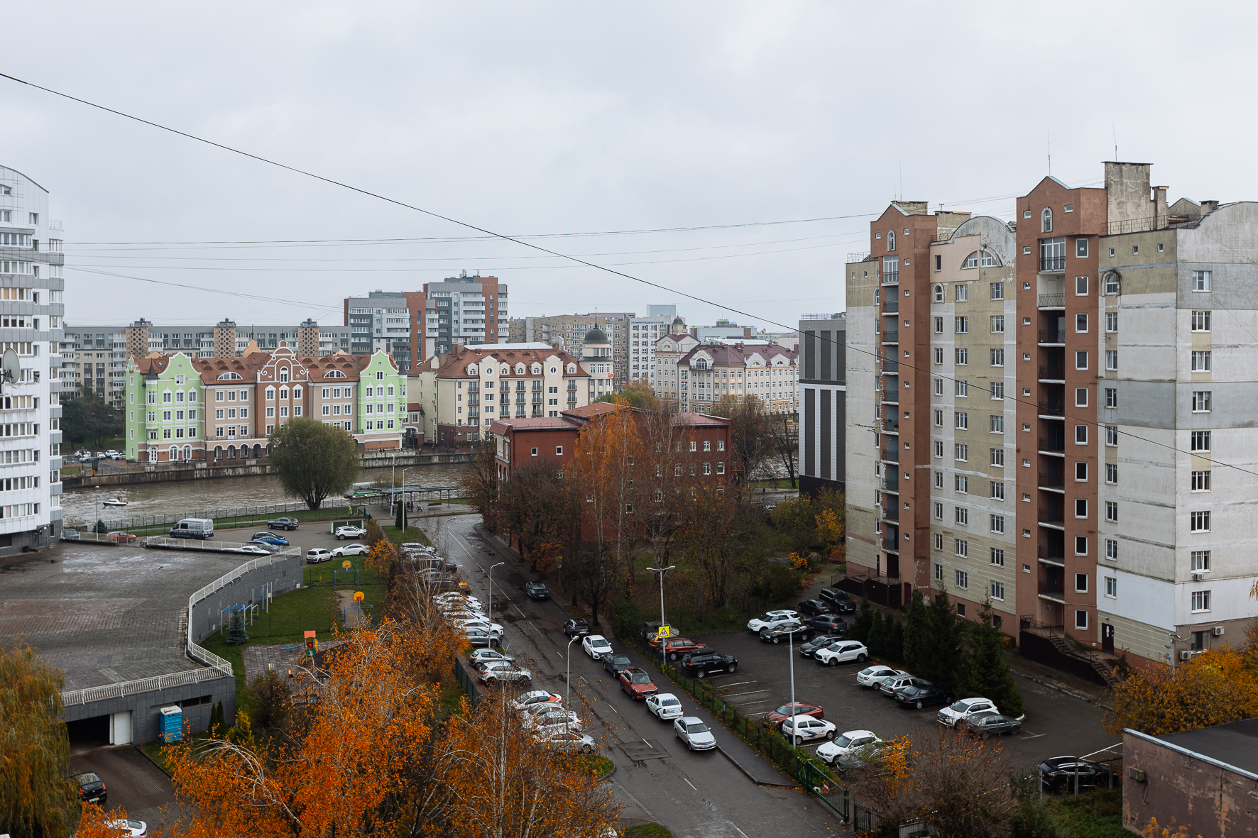 Вы будете гостить в тихом, зелёном районе города Калининград, где напротив подъезда находится остров Канта и всегда играет живая музыка.