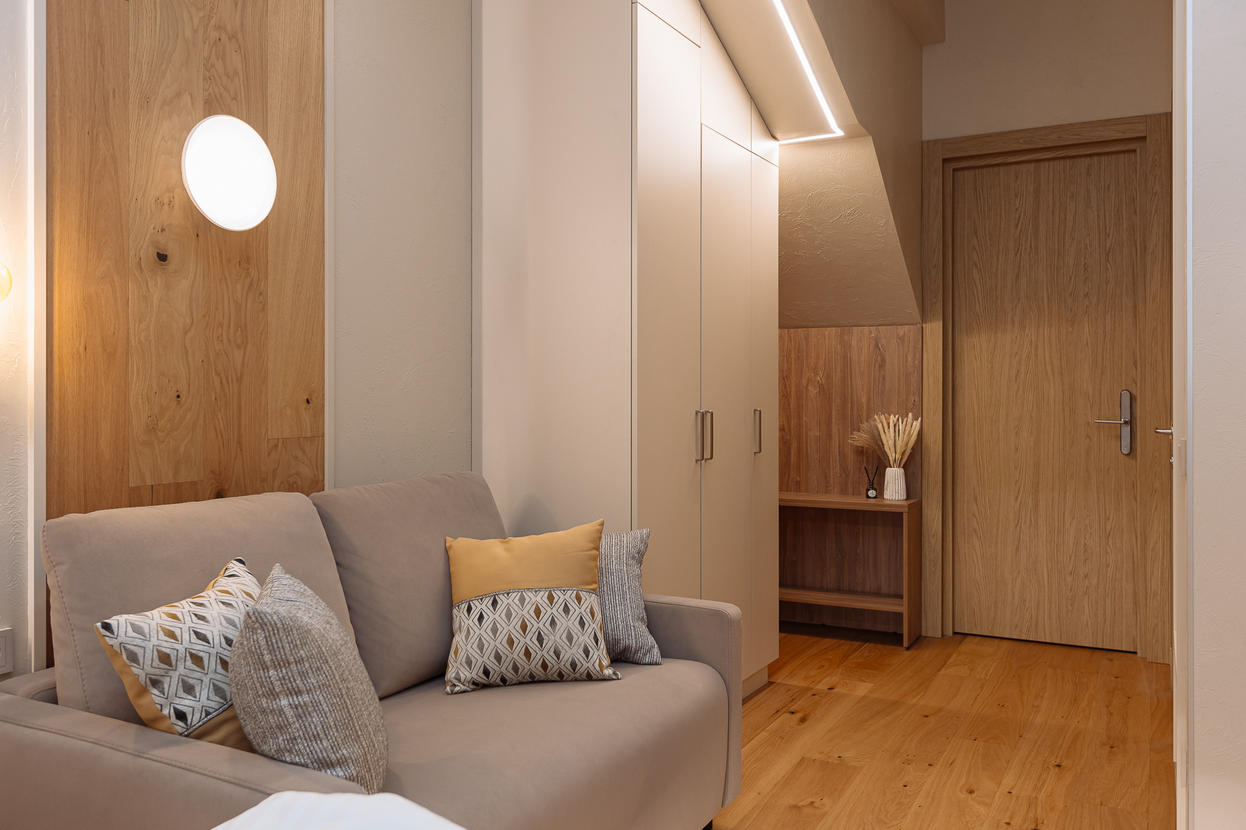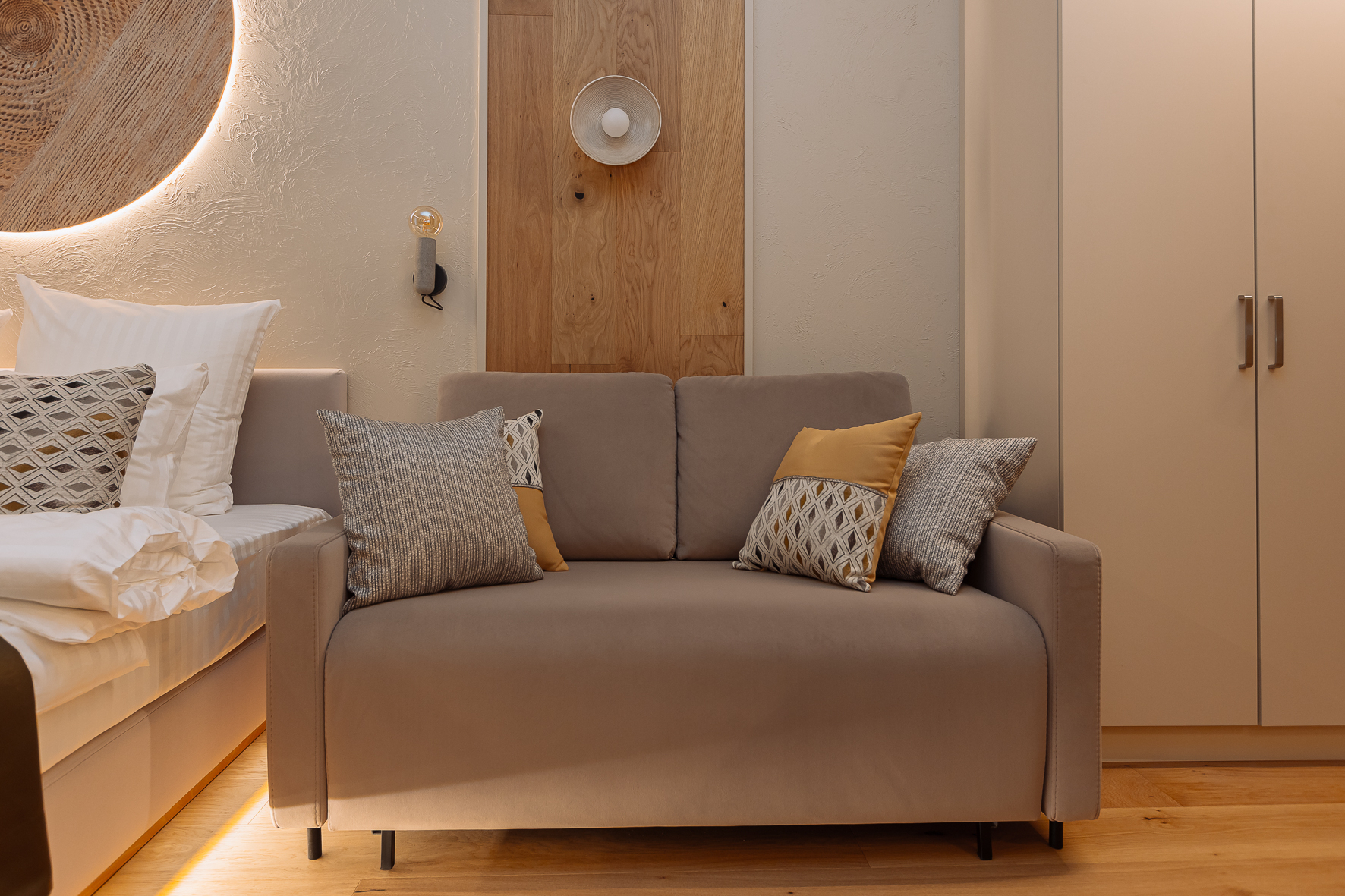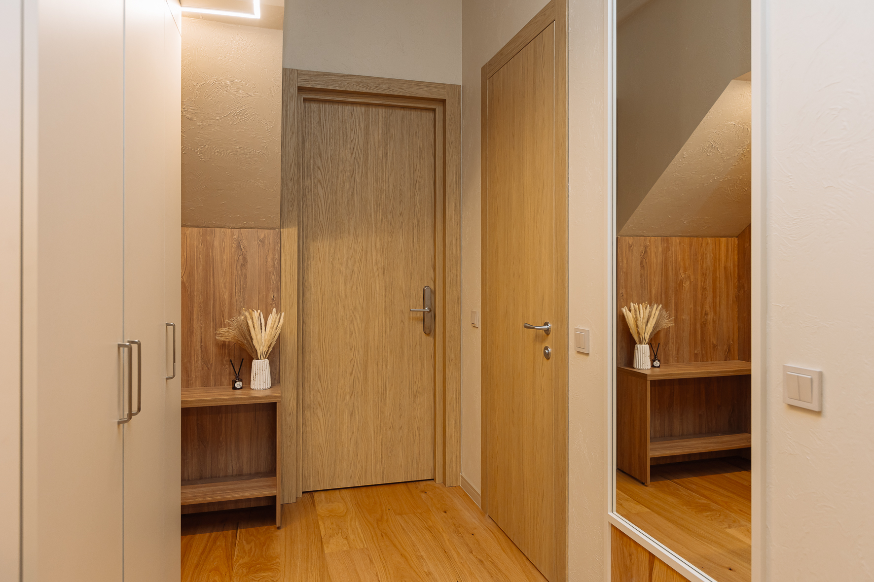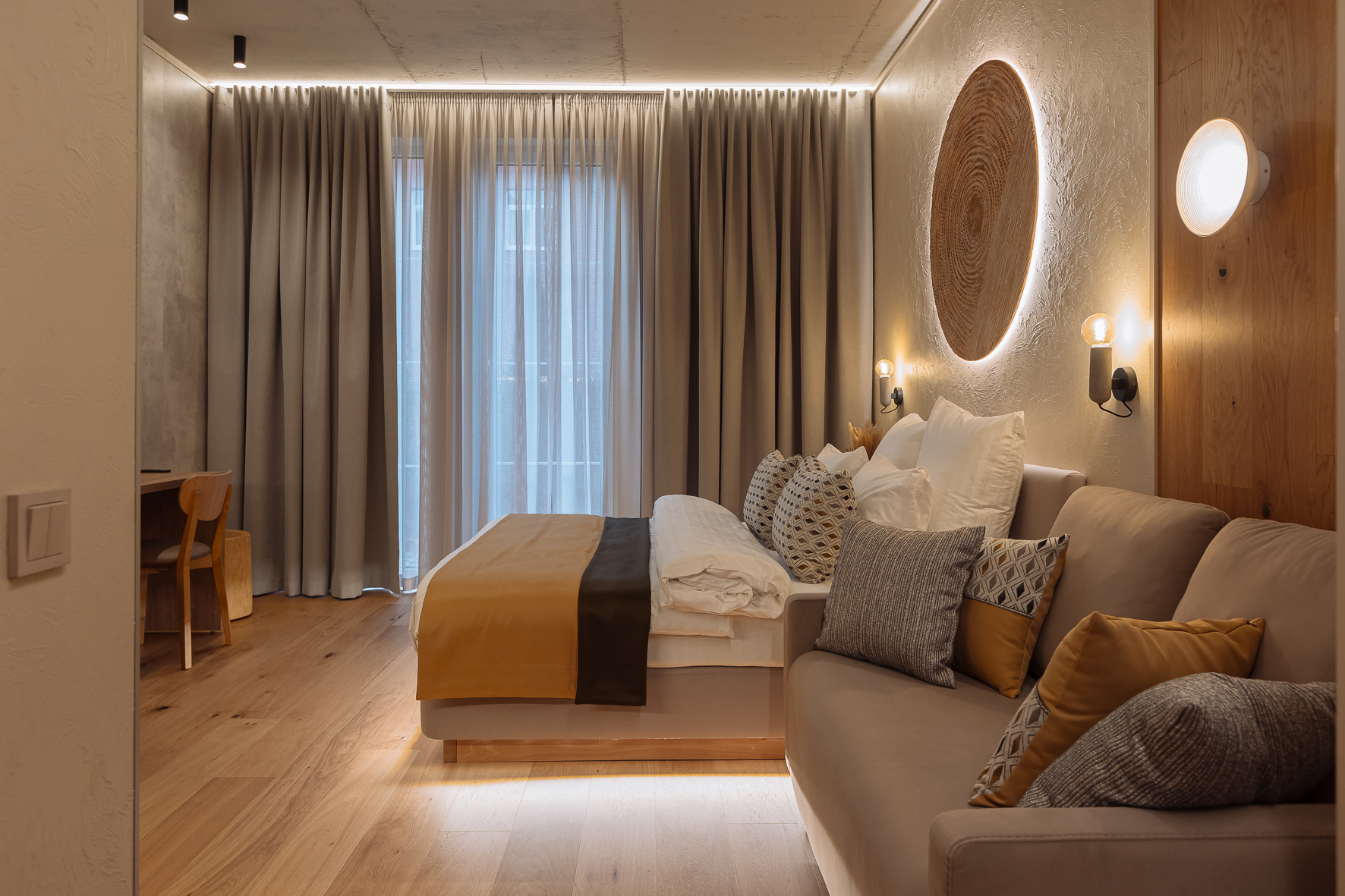 Апартаменты с качественным ремонтом, натуральным паркетом и тёплым полом, который согревает даже в прохладные дни. Прикроватные тумбы из массива дерева и тёплое дерево под ногами создают атмосферу настоящего дома, а не съёмного жилья.